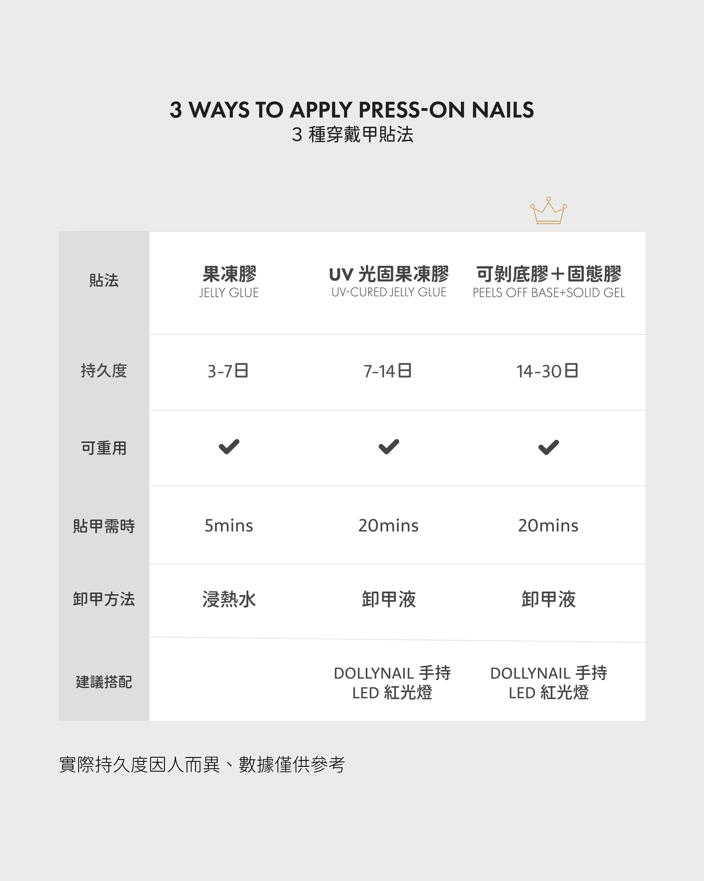 三種穿戴甲貼法指南|持久度比較+適用情況+新手必讀💡